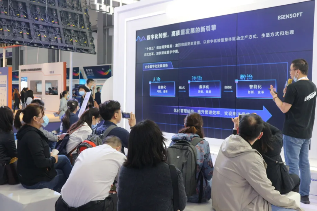 与此同时,大屏宣讲区每天由Ebpay产品总监和咨询总监带来《数据要素驱动政企智慧转型》的演讲,重点分享亿信ABI和睿治产品的特色功能和成功案例。现场演讲表示,在企业的数字化建设中,数据治理和数据分析是发挥
