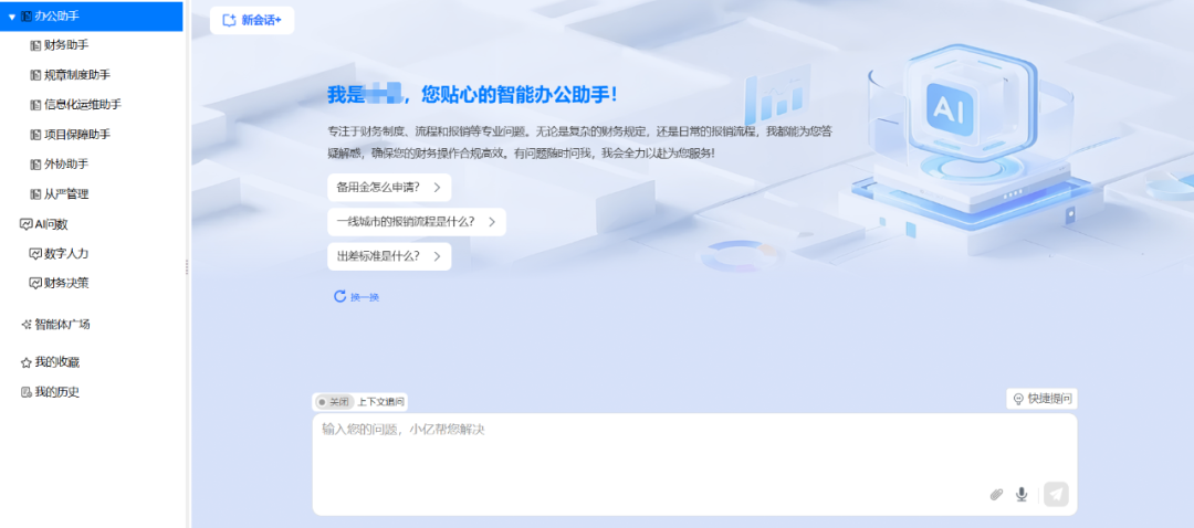 知识管理,办事更高效:整合企业分散知识,构建统一知识库并实现精细权限管控,打造6大办公助手(行政、财务、信息化运维、项目保障、从严管理、外协),有效解决“办事找人难、信息查得慢”的痛点。