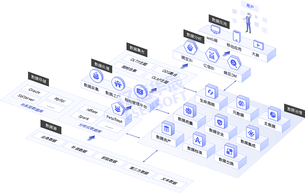 覆盖租赁全行业业务范围,从监管报送、数据存储、数据模型、数据治理到数据应用,实现数据资产全生命周期管控。